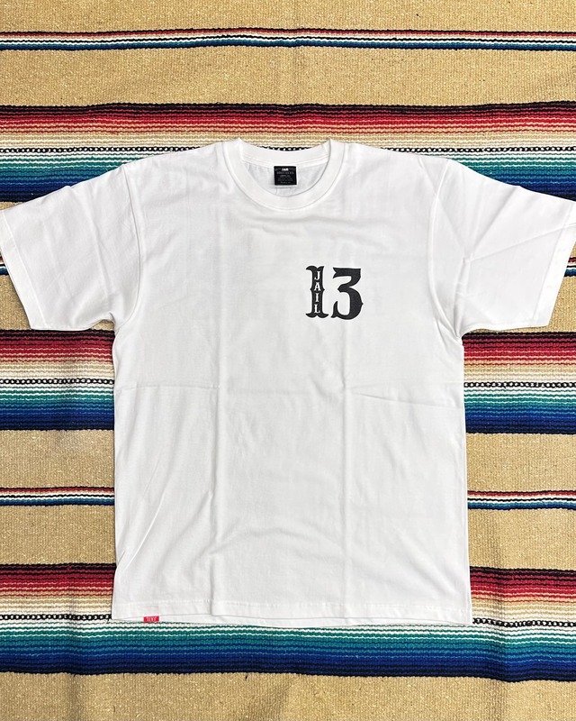 JAIL Tee iron ball ジェイルブラザーズのロゴでもある鉄球に繋がれた囚人の足が描かれたバックプリントが特徴です。フロントはジェイルブラザーズのソウルナンバー13を! 厚めの生地を採用し裾には赤タグをワンポイントに付けました。 color White Black size L XL oz 7.4oz