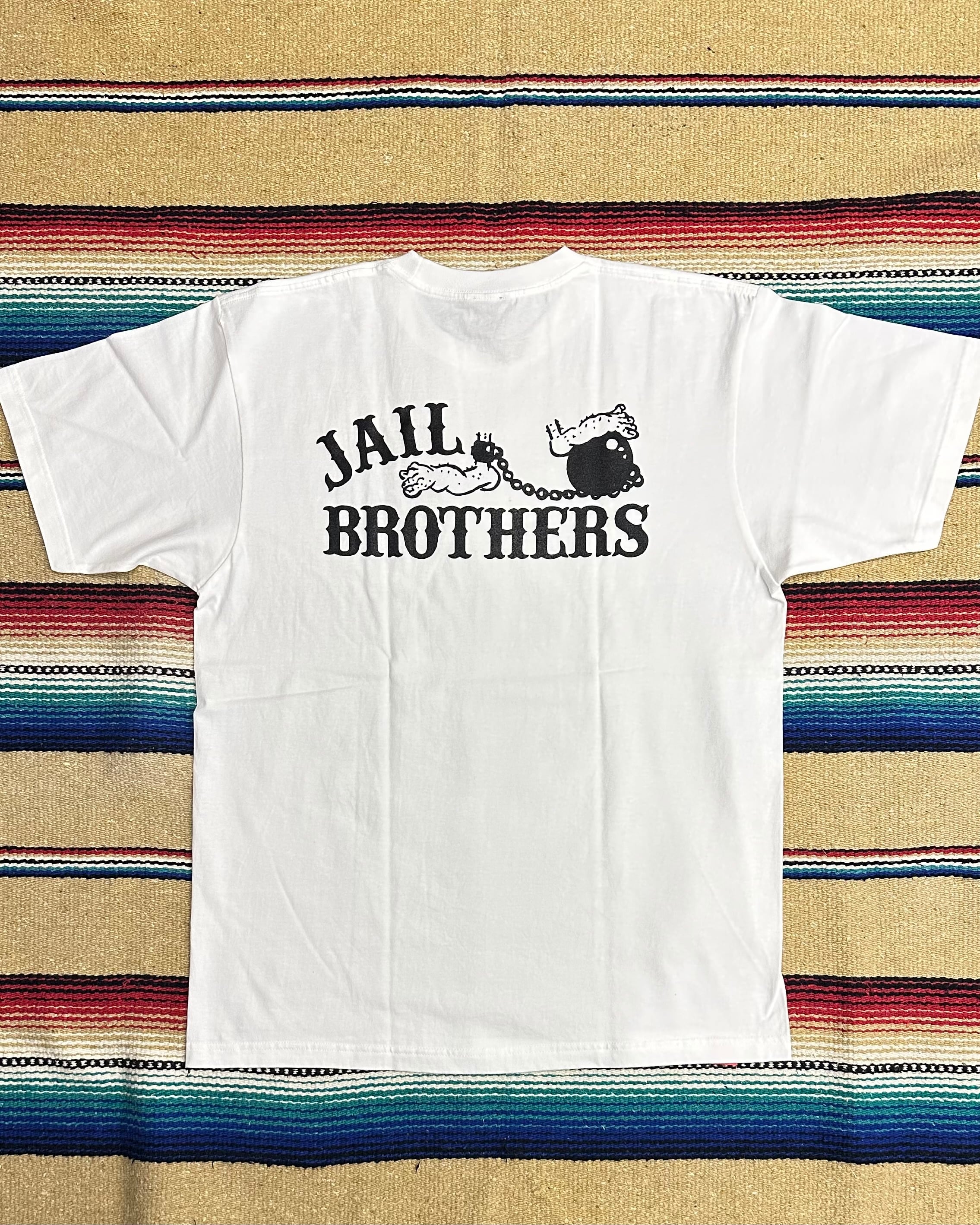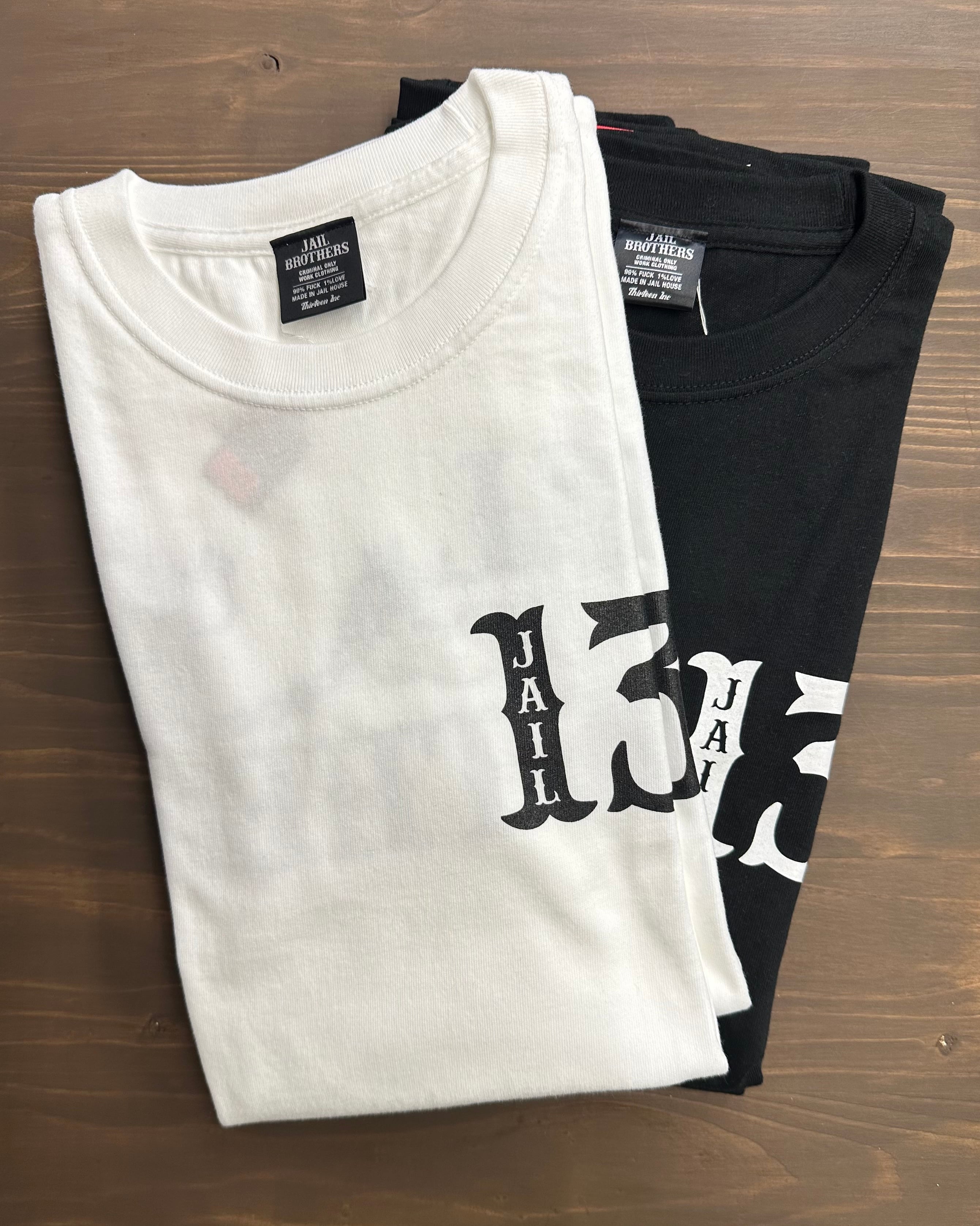 ジェイルブラザーズのロゴでもある鉄球に繋がれた囚人の足が描かれたバックプリントが特徴です。フロントはジェイルブラザーズのソウルナンバー13を!
